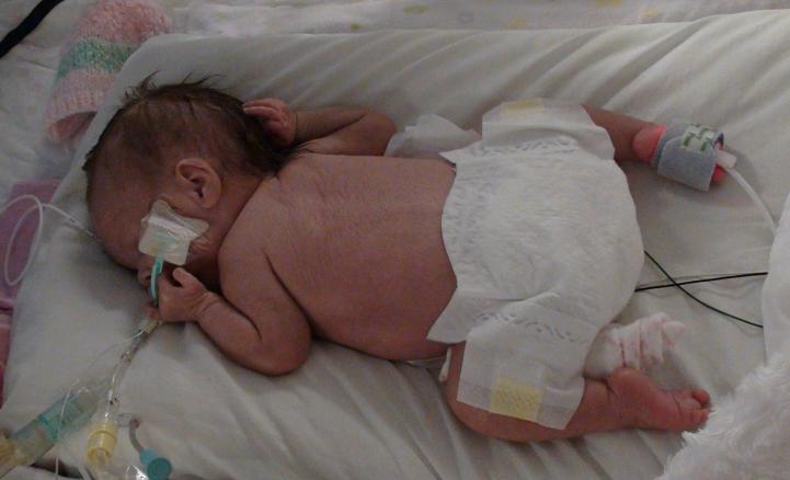 Gemma has been through so much in her short life, resesitated at birth, bilateral femur fractures, two cases of Pneumothorax and Chylothorax, quadruple chest drains, morphine for four weeks, three 2hr attempts at PICC (IV) lines with a successful PICC line that was left in for 5 weeks, arterial lines (blood work line), peripheral lines (line for blood products), NG tube for feeding, reintubated (new ventilator tube) and ventilated for almost two months.